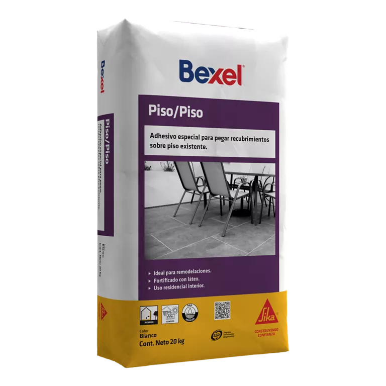 El Adhesivo Piso sobre Piso Blanco de Bexel es ideal tanto para proyectos de remodelación en hogares, oficinas o comercios, como para nuevas instalaciones en superficies firmes y estables. Su presentación en saco de 20 kg brinda un rendimiento adecuado para trabajos de diferentes magnitudes, convirtiéndose en un producto eficiente y confiable.